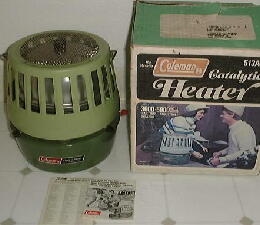 | 【Coleman Heater】 Model: 515A704 1982年代 ・ヒーター本体を逆さにして、燃料を石綿に染み込ませ燃焼させる。 |